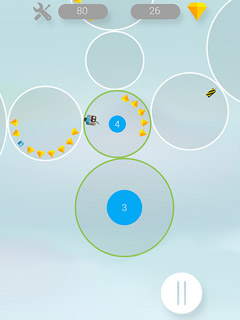 Round and round it goes in this fast paced arcade game and where it stops nobody knows. In Circle Circus your avatar is rotating in different sized circles and all the control you have is a well timed click that will make him jump from the inside of the circle to the outside or vise versa. This way you can not only jump to another circle but also pick up treasures. On your way through the circles you can grab some valuable coins or sometimes even a bonus life. The coins can later be used to unlock new game characters and even to continue a game that is already lost.Play Circle Circus now for free and enjoy fast paced action and never ending challenges!