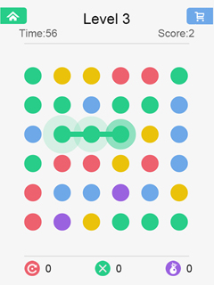 Dots is one of those rare games that you fire up to kill a few minutes of spare time and that you end up playing for hours and hours. You have to connect dots of the same color in order to make them vanish. For every dot you manage to clear, you score points and you have to achieve a certain score within sixty second to pass the level. If you form a loop all dots of the same color will disappear at a single blow. Extras like the ability to clear a single dot from the play field or to stop the time for a few seconds give you the much needed edge if it looks like your badly off.Play this highly addictive puzzle game now online and completely for free!
