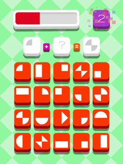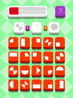 In Shape the player has to find the right shape from a selection to solve an equation. An equation without numbers? Yes, these puzzles are all about adding and subtracting forms. You need to think quick about what piece would complete the shown shape. And quickly means very quickly. You are low on time and after figuring out the solution you still have to find the missing piece from a selection shown on the bottom of the screen. To set a record in this game you need to be highly intelligent and to show keen perception. Do you have what it takes?Play Shape now for free, the highly addictive gameplay will keep you entertained and engaged for a long time!